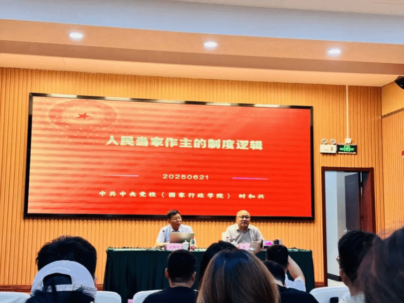 2025年6月21日,研究生部邀请中共中央党校(国家行政学院)研究生院院长时和兴教授开展题为“人民当家作主的制度逻辑”高端学术讲座。讲座由科社教研部袁峰教授主持,我校全体学术型研究生、MPA研究生及部分教职工参加讲座。